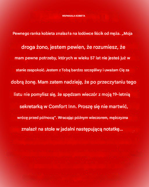 Wyobraź sobie, że budzisz się pewnego ranka i znajdujesz liścik od ukochanej osoby niedbale przyklejony do lodówki, rozwijający się niczym list pocieszenia, ale z zakończeniem, które sprawiłoby, że wyplułbyś poranną kawę. Nasza historia zaczyna się dokładnie tak – od kobiety odkrywającej list od męża. Brzmi on mniej więcej tak: Moja droga żono, zrozumiesz, że mam … Read more